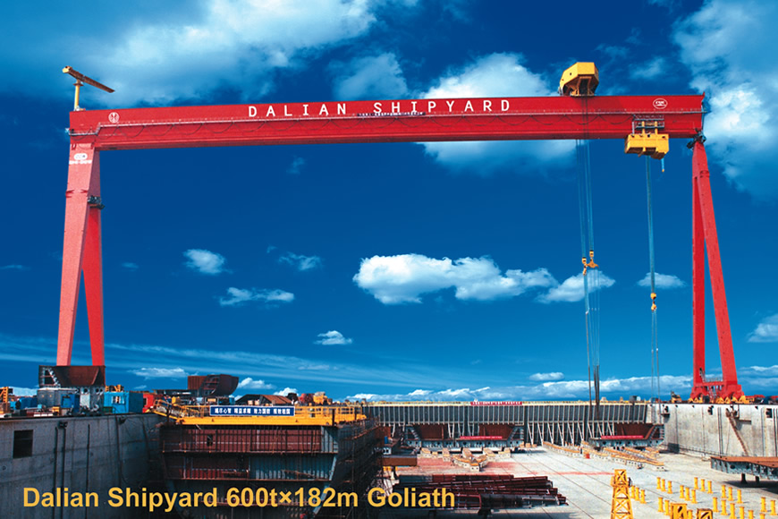 造船門式起重機(jī)是一種大起重量、大跨度,多功能、高效率的門式起重機(jī),專用于船塢或船臺(tái)進(jìn)行大型船體分段、對(duì)接及翻轉(zhuǎn)作業(yè)。 大連重工自1999年研制出全變頻調(diào)速造船門式起重機(jī)以來,積累了豐富的機(jī)電設(shè)計(jì)、結(jié)構(gòu)分析計(jì)算、制造、運(yùn)輸、安裝和調(diào)試經(jīng)驗(yàn),形成了自主的核心技術(shù),至今已研制了200—800噸等不同規(guī)格的造船門式起重機(jī)。