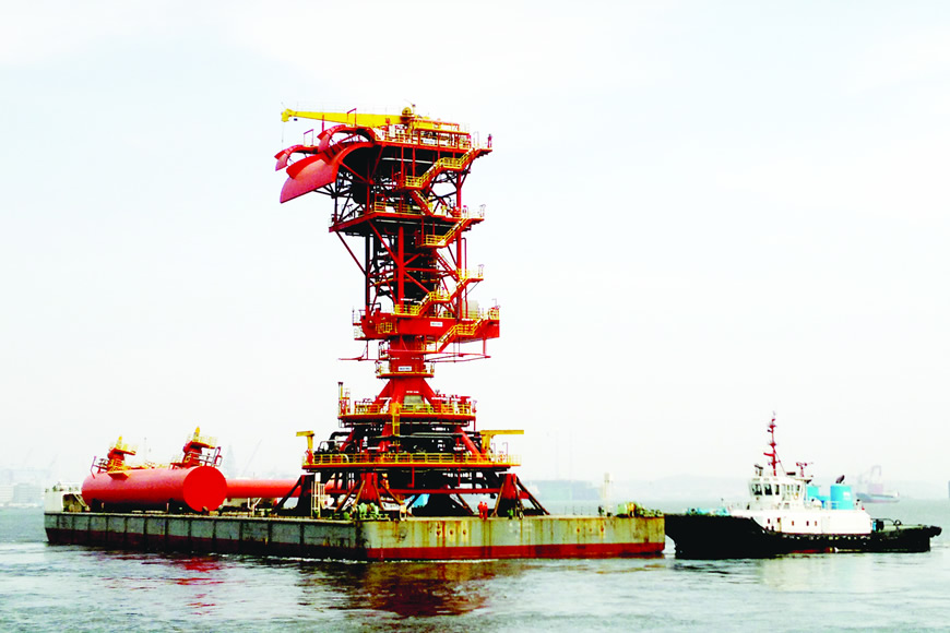 單點(diǎn)系泊是海洋石油開發(fā)工程中的重要設(shè)施之一。大連重工為中海油研制的單點(diǎn)系泊產(chǎn)品用于系泊海上石油加工處理裝置和油氣傳輸,設(shè)備總重為2144噸,企業(yè)承擔(dān)了單點(diǎn)系泊系統(tǒng)中建造工藝的制定、整體鋼結(jié)構(gòu)的制造、全部鑄件的鑄造、全部鑄鍛件的機(jī)加工以及除管系和電氣設(shè)備外所有部件的裝配。